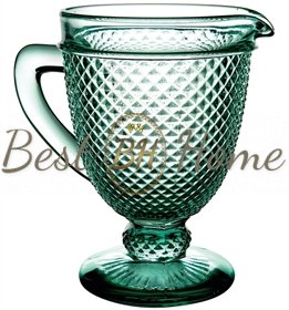 Кувшин изготовлен из цветного стекла, варенного в массе. Благодаря компонентам высшего качества используемых в производстве стекла, изделия имеют живой блеск, играют переливами на свету, долговечны в использовании, чем выгодно отличаются от других подобных изделий (дешевых копий) привезенных из Китая.