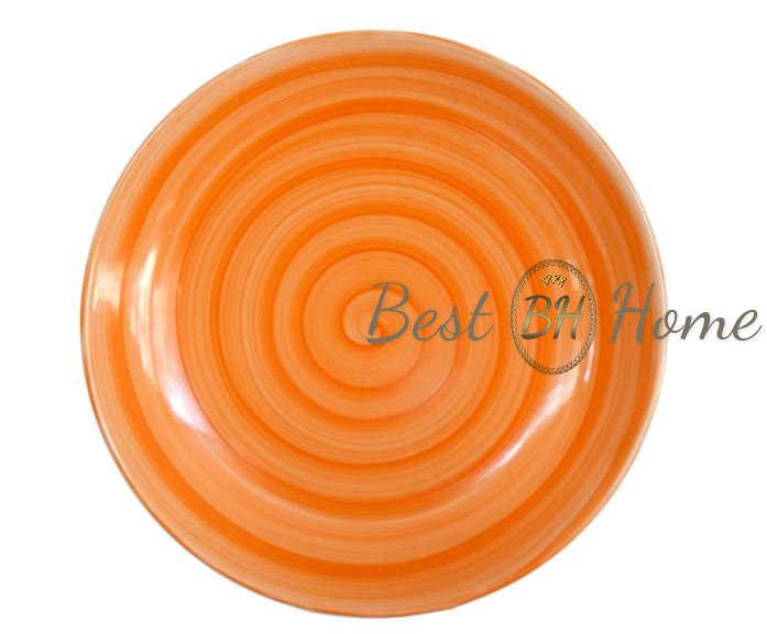 Нанесение цвета на тарелку; Покрытие подглазурное, оранжевой краской