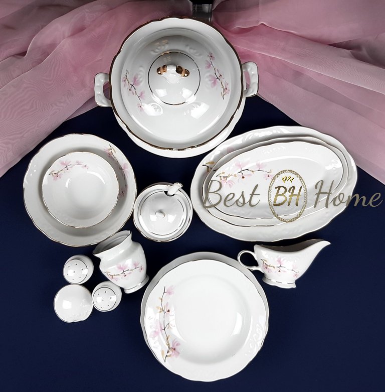 Ваза для супу 3000 см3 – 1 шт. Блюдо овальне 315 мм - 1 шт. Блюдо середнє, під шубу:)) 270 мм – 1 шт. Оселедниця 250 мм - 1 шт. Серветниця 100 мм – 1 шт. Соусник 200 см3 – 1 шт. Хрінниця 230 см3 - 1 шт. Салатник 1000 см3 – 1 шт. Салатник 300 см3 – 6 шт. Тарілка 240 мм дрібна – 6 шт. Тарілка 220 мм глибока 350 см3 – 6 шт. Тарілка 200 мм дрібна – 6 шт. Тарілка 175 мм дрібна – 6 шт. Гірчичниця 60 см3 – 1 шт. Перечниця 80 см3 – 2 шт.