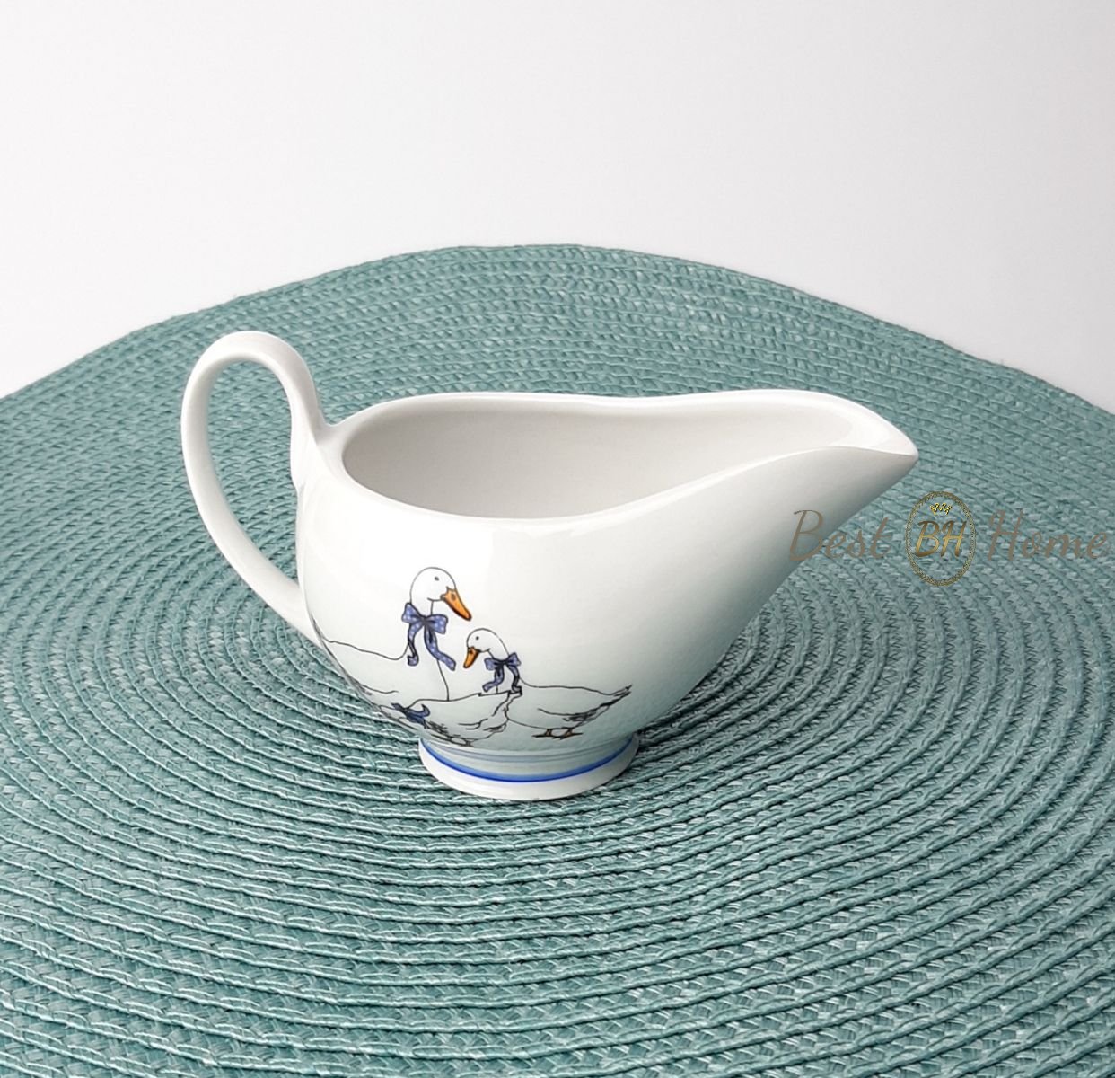 Фарфоровый  соусник, из коллекции посуды Гуси; длинна(от носика до ручки) 10см; высота 5,8 см